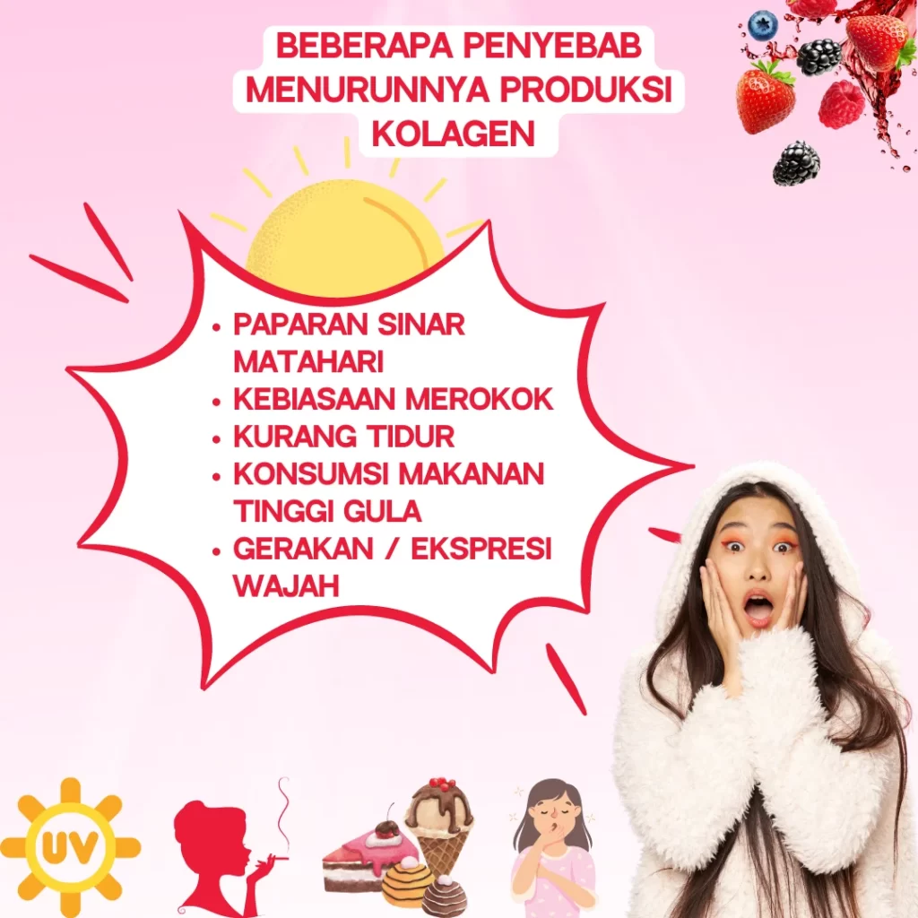 Kekurangan kolagen dapat membuat kulit tidak elastis. Jika kulit wajah kehilangan elastisitasnya, pipi bisa terlihat kendur, dan beberapa bagian wajah mulai berkerut. Sama seperti pengurangan jumlah kolagen dalam tubuh, elastisitas kulit juga akan perlahan menurun seiring dengan bertambahnya usia.